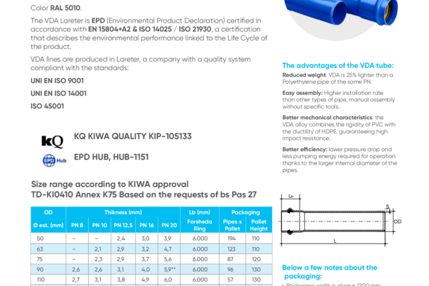 VDA® sustav: cijevi i koljena od PVC-A za transport vode